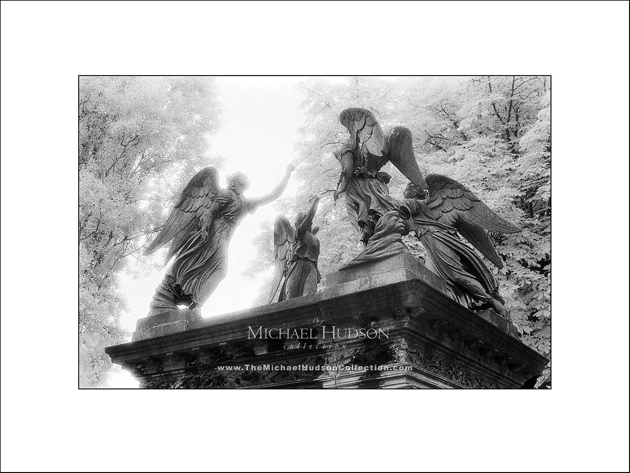 I’ve lost track of the number of times I’ve visited Kensal Green Cemetery in London, the most recent being in February 2019. For me, it’s one of the most beautiful cemeteries in Britain, and contains many unusual stone monuments, including a sphinx, full size lion and more. I’ve often photographed this Victorian gathering of angels on top of a plinth. This time, in the summer of 2000, I used Kodak High Speed infrared film, which gives the images an ethereal, grainy glow.
